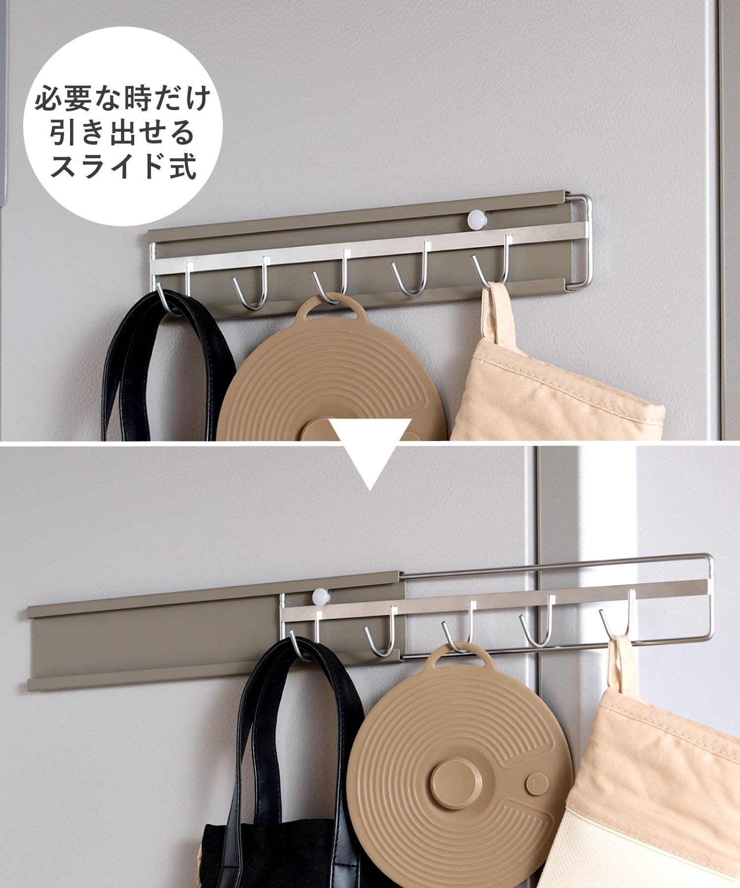 引っ掛ける位置を調整しやすいタイプなら、使い方の自由度も高く、キッチン・洗面所・玄関など幅広い場所で活躍します。