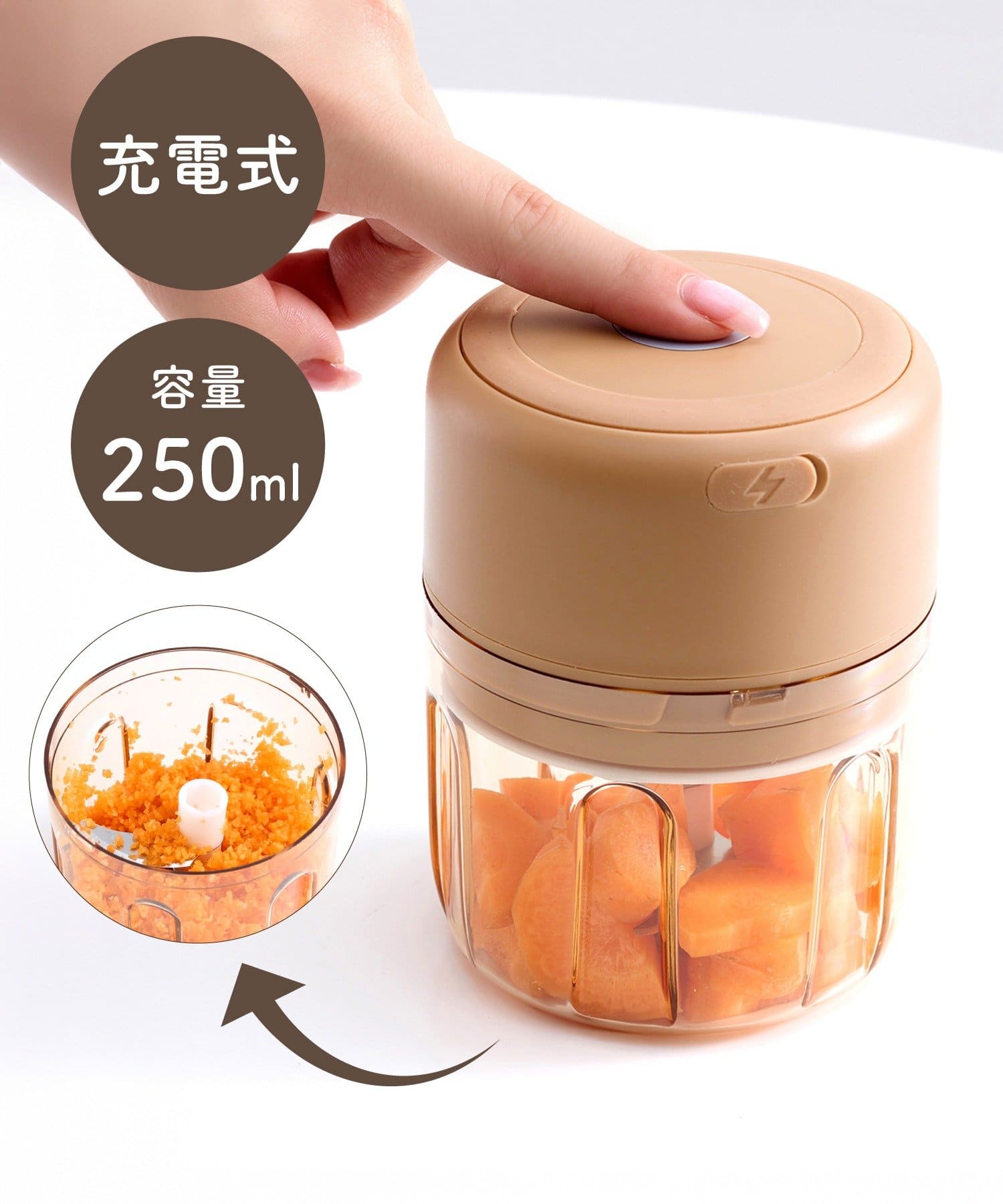 電動フードプロセッサーは、みじん切りや食材の細かい下ごしらえを時短したい人にぴったりです。