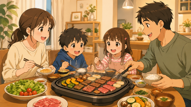 家族で焼肉やお好み焼きを楽しむなら、プレートの広さと火力は重要です。